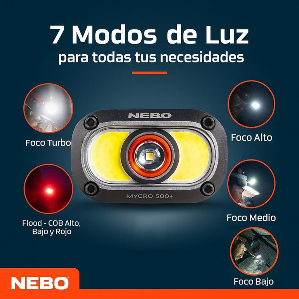 Linterna de Cabeza Recargable NEBO Mycro 500+ Lúmenes