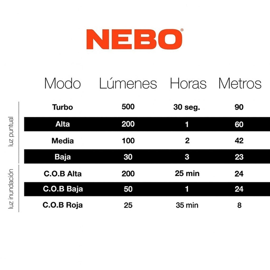 • COB LOW (50 lúmenes) - 1 hora / 11 metros