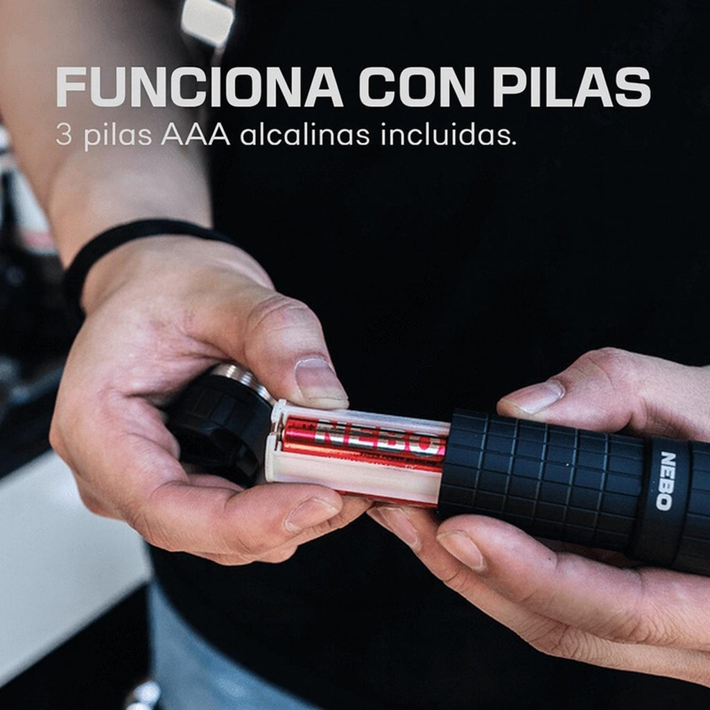 • Funciona con 3 pilas alcalinas AAA (incluidas)